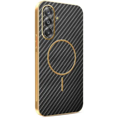 Entdecken Sie die Phonesta Luxury Carbon Fiber Hülle mit MagSafe, speziell entwickelt für Ihr Samsung Galaxy A17/A26. Diese Hülle besteht aus flexiblem TPU und bietet hervorragende Stoßdämpfung sowie eine perfekte Passform. Sie schützt Ihr Smartphone zuverlässig vor Stürzen und Stößen. Die Farbe Schwarz verleiht Ihrem Gerät ein elegantes Aussehen, während die vergoldete elektroplattierte Oberfläche zusätzliche Haltbarkeit bietet. Diese Hülle ist sowohl stilvoll als auch robust – ideal für den täglichen Gebrauch.