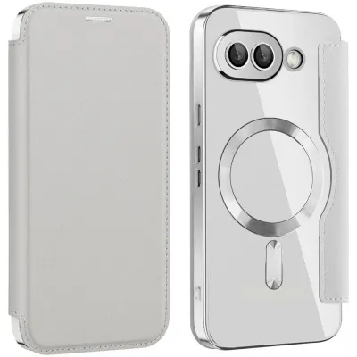 Phonesta Luxury Crystal Book Wallet Klapphülle mit MagSafe für Google Pixel 9a - Silber
