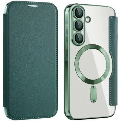 Phonesta Luxury Crystal Book Wallet Klapphülle mit MagSafe für Samsung Galaxy A36/A56 - Dunkelgrün