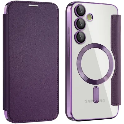 • Phonesta Luxury Crystal Book Wallet Klapphülle mit MagSafe für Samsung Galaxy S24 FE - Dunkelviolett