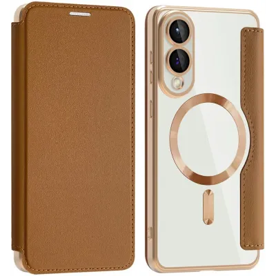 Phonesta Luxury Crystal Book Wallet Klapphülle mit MagSafe für Samsung Galaxy S25 Edge - Braun