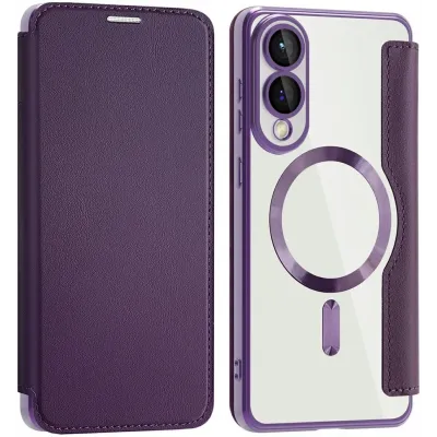 • Phonesta Luxury Crystal Book Wallet Klapphülle mit MagSafe für Samsung Galaxy S25 Edge - Dunkelviolett