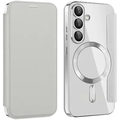 Phonesta Luxury Crystal Book Wallet Klapphülle mit MagSafe für Samsung Galaxy S25/S24 - Silber