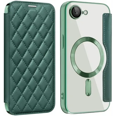 Phonesta Luxury Crystal Puffed Book Wallet Klapphülle mit MagSafe für Apple iPhone 17e/16e - Dunkelgrün