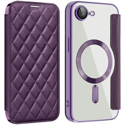 Phonesta Luxury Crystal Puffed Book Wallet Klapphülle mit MagSafe für Apple iPhone 17e/16e - Dunkelviolett
