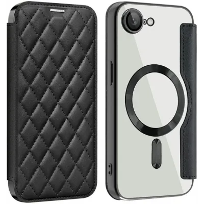 • Phonesta Luxury Crystal Puffed Book Wallet Klapphülle mit MagSafe für Apple iPhone 17e/16e - Schwarz