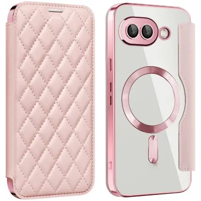 HandyhüllenGoogle HüllenGoogle Pixel 9a HüllenPhonesta Luxury Crystal Puffed Book Wallet Klapphülle mit MagSafe für Google Pixel 9a - Rosa