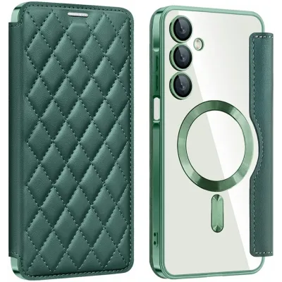Phonesta Luxury Crystal Puffed Book Wallet Klapphülle mit MagSafe für Samsung Galaxy A16 - Dunkelgrün