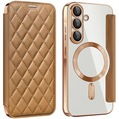 Phonesta Luxury Crystal Puffed Book Wallet Klapphülle mit MagSafe für Samsung Galaxy A36/A56 - Braun