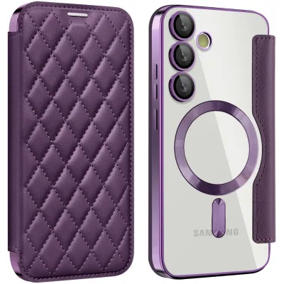 Phonesta Luxury Crystal Puffed Book Wallet Klapphülle mit MagSafe für Samsung Galaxy S24 FE - Dunkelviolett