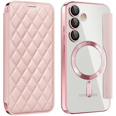 • Phonesta Luxury Crystal Puffed Book Wallet Klapphülle mit MagSafe für Samsung Galaxy S24 FE - Rosa