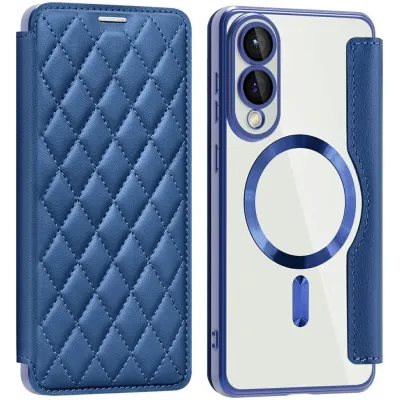 Phonesta Luxury Crystal Puffed Book Wallet Klapphülle mit MagSafe für Samsung Galaxy S25 Edge - Dunkelblau