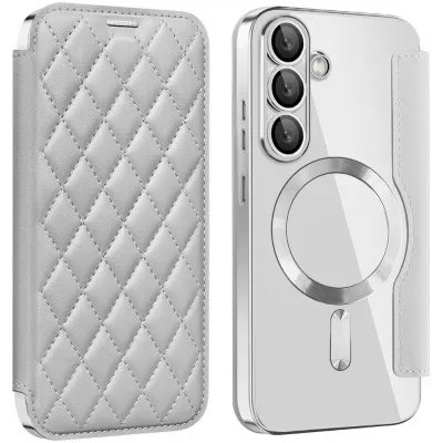 Phonesta Luxury Crystal Puffed Book Wallet Klapphülle mit MagSafe für Samsung Galaxy S25/S24 - Silber