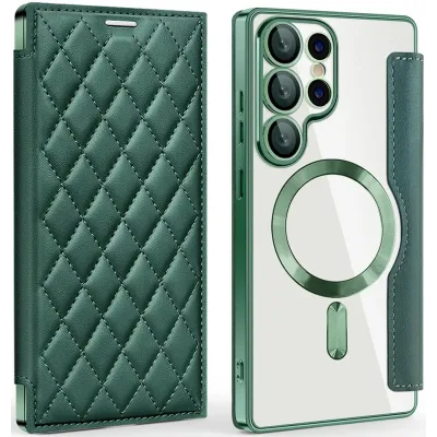 Phonesta Luxury Crystal Puffed Book Wallet Klapphülle mit MagSafe für Samsung Galaxy S25 Ultra - Dunkelgrün