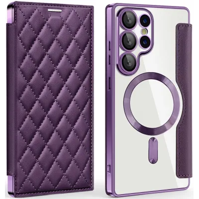 Phonesta Luxury Crystal Puffed Book Wallet Klapphülle mit MagSafe für Samsung Galaxy S25 Ultra - Dunkelviolett