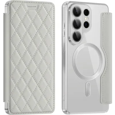 Phonesta Luxury Crystal Puffed Book Wallet Klapphülle mit MagSafe für Samsung Galaxy S26 Ultra - Silber