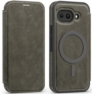 Phonesta Luxury Leder Book Wallet Klapphülle mit MagSafe für Google Pixel 9a - Grau
