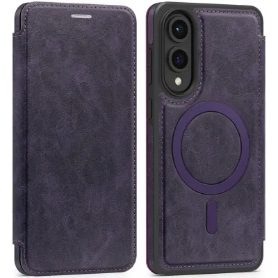 Phonesta Luxury Leder Book Wallet Klapphülle mit MagSafe für Samsung Galaxy S25 Edge - Dunkelviolett