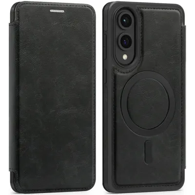 Phonesta Luxury Leder Book Wallet Klapphülle mit MagSafe für Samsung Galaxy S25 Edge - Schwarz