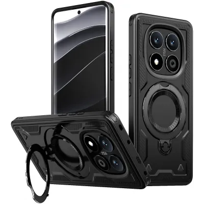 Phonesta MagLock Armor Back Cover Hülle Ring und MagSafe für Xiaomi Redmi Note 14 Pro 4G/5G/14 Pro Plus / Xiaomi Poco X7 - Schwarz