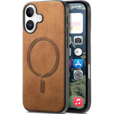 • Phonesta Retro Vegan Leder MagSafe Back Cover Hülle für Apple iPhone 16 - Braun