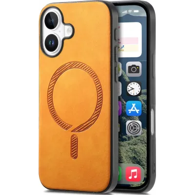 • Phonesta Retro Vegan Leder MagSafe Back Cover Hülle für Apple iPhone 16 - Orange