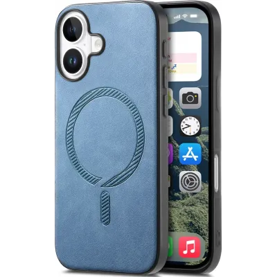 • Phonesta Retro Vegan Leder MagSafe Back Cover Hülle für Apple iPhone 16 Plus - Blau