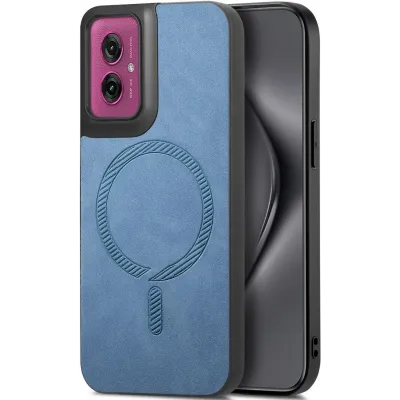 Phonesta Retro Vegan Leder MagSafe Back Cover Hülle für Motorola Moto G55 - Blau