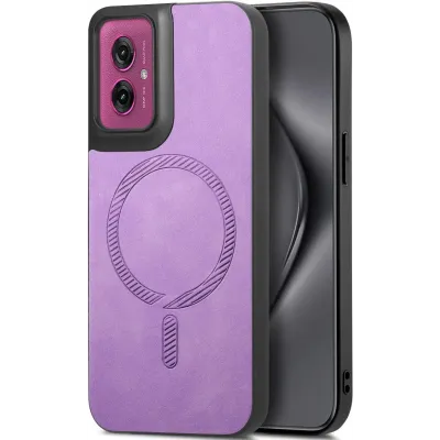 Phonesta Retro Vegan Leder MagSafe Back Cover Hülle für Motorola Moto G55 - Lila