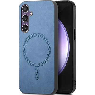 Phonesta Retro Vegan Leder MagSafe Back Cover Hülle für Samsung Galaxy S24 FE - Blau