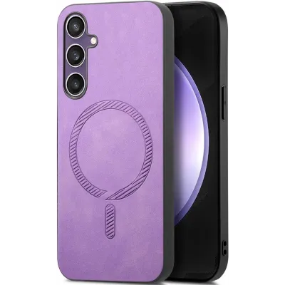 • Phonesta Retro Vegan Leder MagSafe Back Cover Hülle für Samsung Galaxy S24 FE - Lila