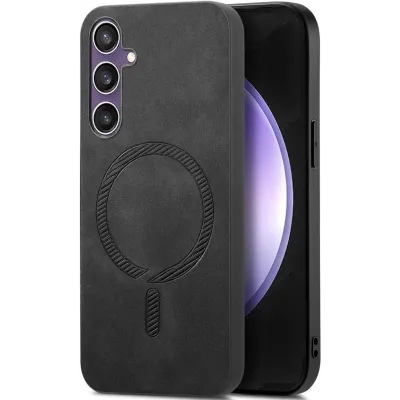 HandyhüllenSamsung Galaxy HüllenSamsung Galaxy S24 FE HüllenPhonesta Retro Vegan Leder MagSafe Back Cover Hülle für Samsung Galaxy S24 FE - Schwarz