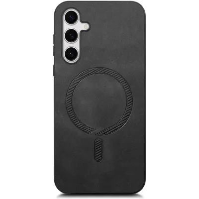 HandyhüllenSamsung Galaxy HüllenSamsung Galaxy S24 HüllenPhonesta Retro Vegan Leder MagSafe Back Cover Hülle für Samsung Galaxy S25/S24 - Schwarz