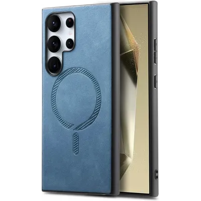 Phonesta Retro Vegan Leder MagSafe Back Cover Hülle für Samsung Galaxy S25 Ultra - Blau