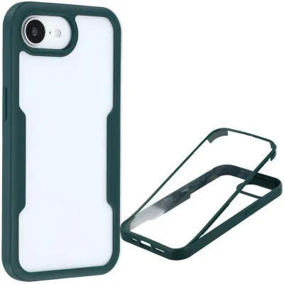 Die Phonesta Slim Protect 360 Vollschutzhülle für das Apple iPhone 17e/16e bietet ausgezeichneten Schutz für Ihr Smartphone. Hergestellt aus hochwertigem Thermoplastic Polyurethane (TPU) und Acryl, ist diese Hülle langlebig und zuverlässig. Sie bietet vollständigen 360-Grad-Schutz gegen Stürze, Stöße und Kratzer, sodass Sie sich keine Sorgen über tägliche Abnutzung machen müssen. Die Farbe Grün verleiht der Hülle ein stilvolles Aussehen, während die transparente Acryl-Rückseite das ursprüngliche Design Ihres Telefons zeigt. So sieht Ihr Telefon immer gut aus, auch mit einer Hülle.