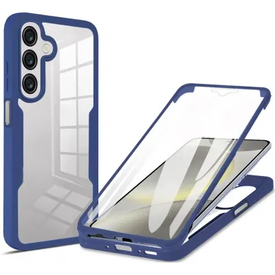 Die Phonesta Slim Protect 360 Vollschutzhülle für das Samsung Galaxy A26 bietet ausgezeichneten Schutz für Ihr Smartphone. Hergestellt aus hochwertigem Thermoplastic Polyurethane (TPU) und Acryl, ist diese Hülle langlebig und zuverlässig. Sie bietet vollständigen 360-Grad-Schutz gegen Stürze, Stöße und Kratzer, sodass Sie sich keine Sorgen über tägliche Abnutzung machen müssen. Die Farbe Blau verleiht der Hülle ein stilvolles Aussehen, während die transparente Acryl-Rückseite das ursprüngliche Design Ihres Telefons zeigt. So sieht Ihr Telefon immer gut aus, auch mit einer Hülle.