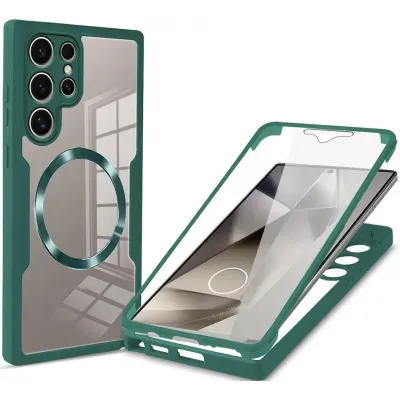 HandyhüllenSamsung Galaxy HüllenSamsung Galaxy S24 Ultra HüllenPhonesta Slim Protect 360 Vollschutzhülle Displayschutzfolie und MagSafe für Samsung Galaxy S24 Ultra - Grün