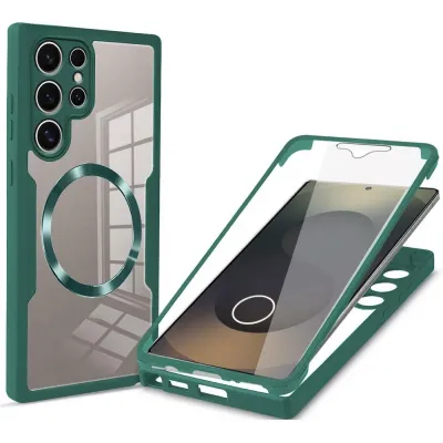 HandyhüllenSamsung Galaxy HüllenSamsung Galaxy S25 Ultra HüllenPhonesta Slim Protect 360 Vollschutzhülle Displayschutzfolie und MagSafe für Samsung Galaxy S25 Ultra - Grün