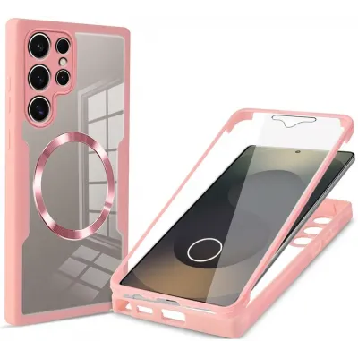 HandyhüllenSamsung Galaxy HüllenSamsung Galaxy S25 Ultra HüllenPhonesta Slim Protect 360 Vollschutzhülle Displayschutzfolie und MagSafe für Samsung Galaxy S25 Ultra - Rosa