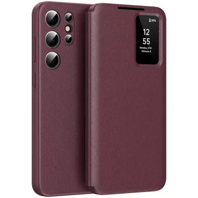 • Phonesta Smart Window Book Wallet Klapphülle für Samsung Galaxy S24 Ultra - Bordeaux