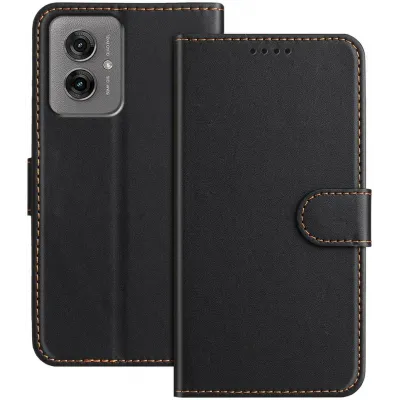 Phonesta Leder Vertical Flip Book Wallet Klapphülle für Motorola Moto G55 - Schwarz