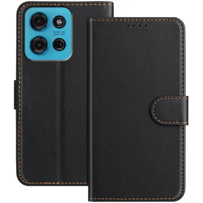 • Phonesta Smooth Skin Book Wallet Klapphülle für Motorola Moto G75 - Schwarz