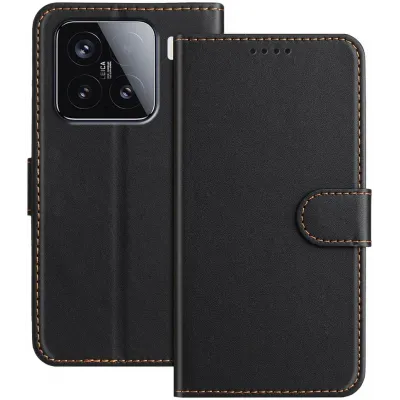 Phonesta Leder Vertical Flip Book Wallet Klapphülle für Xiaomi 15 - Schwarz