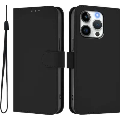 Phonesta Soft Skin Book Wallet Klapphülle für Apple iPhone 15 Pro - Schwarz