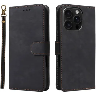 Phonesta Soft Skin Book Wallet Klapphülle für Apple iPhone 16 Pro - Schwarz