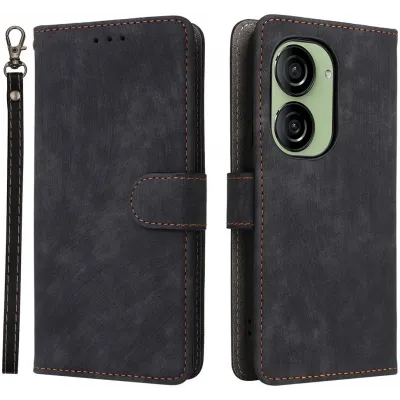 Phonesta Vintage Skin Book Wallet Klapphülle für Asus Zenfone 10 - Schwarz