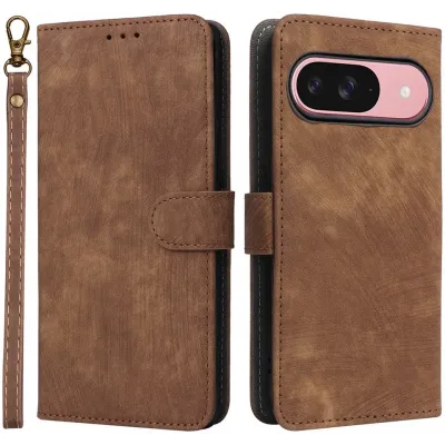 Phonesta Vintage Skin Book Wallet Klapphülle für Google Pixel 9 / 9 Pro - Braun
