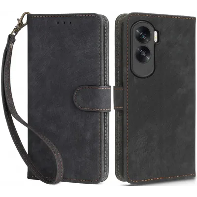 • Phonesta Vintage Skin Book Wallet Klapphülle für HONOR 90 Lite - Schwarz