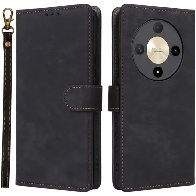 • Phonesta Vintage Skin Book Wallet Klapphülle für HONOR Magic6 Lite - Schwarz