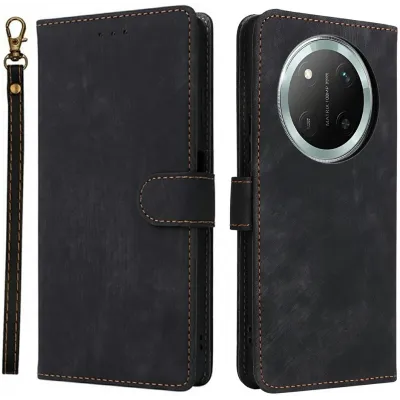 Phonesta Vintage Skin Book Wallet Klapphülle für HONOR Magic7 Lite - Schwarz